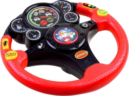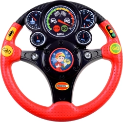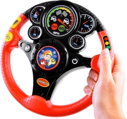 Operarea este intuitivă: butonul on/off activează sunetele, vibrațiile și iluminarea, butonul cu notă muzicală pornește melodii și claxon, butonul galben „GO” adaugă vibrații și sunetul motorului, celelalte butoane galbene simulează semnalizarea și frânarea, iar semaforul îi învață culorile luminilor. După terminarea jocului, volanul trece singur în modul de repaus.
