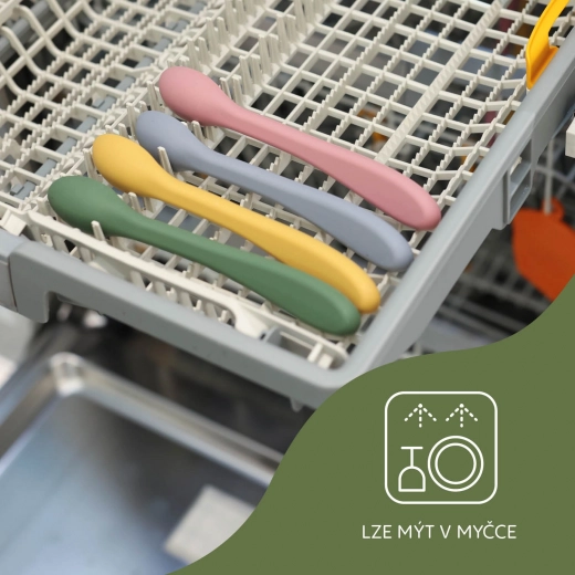 Fabricată din silicon alimentar, această linguriță este prietenoasă cu gingiile copiilor.