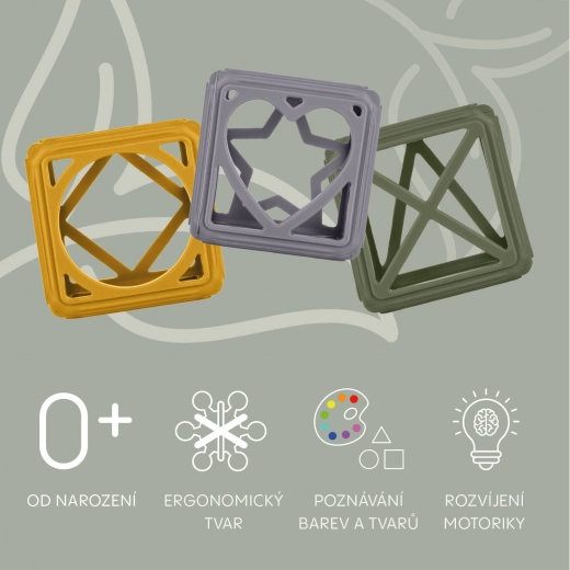 Jucărie dentară din silicon Square, Forest Green - Ușor de ținut, sigură pentru gingii, și ideală pentru calmarea disconfortului din perioada de creștere a dinților. Fabricată din silicon fără BPA.