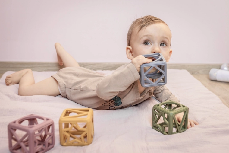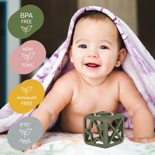 Ajutați-vă bebelușul să depășească perioada dificilă a erupției dentare cu inelul de dentiție din silicon Square. Forma sa geometrică unică se potrivește perfect mânuțelor mici și oferă un masaj eficient al gingiilor, care atenuează disconfortul din timpul erupției dentare.