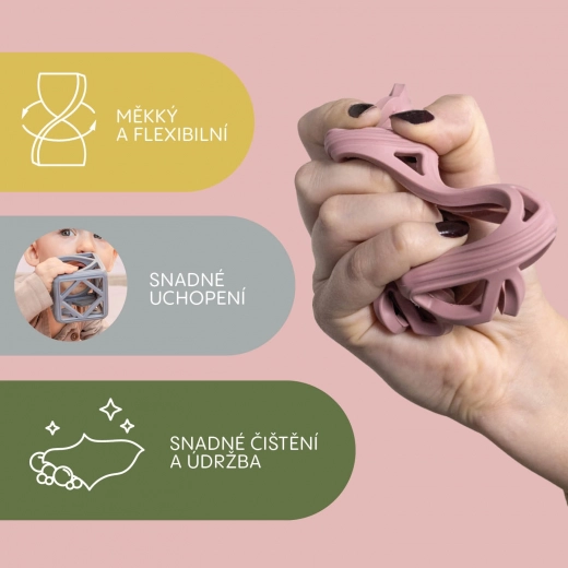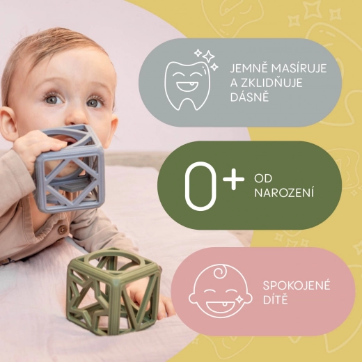 Ajutați-vă bebelușul să treacă mai ușor prin perioada solicitantă a erupției dentare cu jucăria de dentiție din silicon Square. Forma sa geometrică unică se potrivește perfect în mâinile mici și oferă un masaj eficient al gingiilor, care ameliorează disconfortul în timpul erupției dinților.