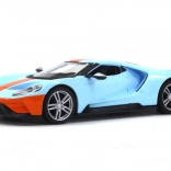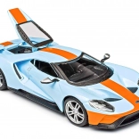 Acest model Bburago, realizat cu atenție la detalii, aduce în colecția ta legendarul Ford GT într-o combinație atractivă de albastru deschis cu dungi portocalii de curse. Datorită metalului die-cast de calitate și proporțiilor precise, modelul are un aspect foarte realist și evidențiază orice raft sau vitrină.