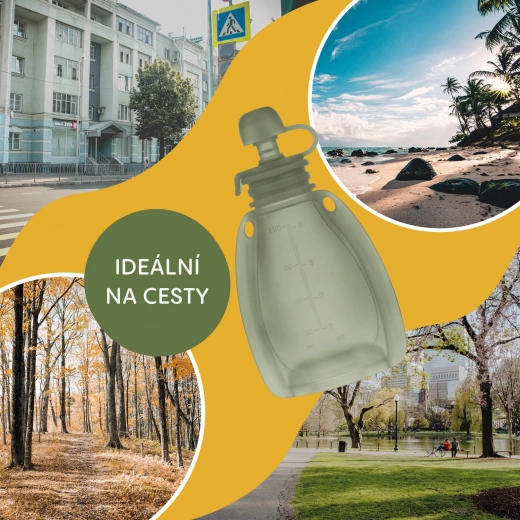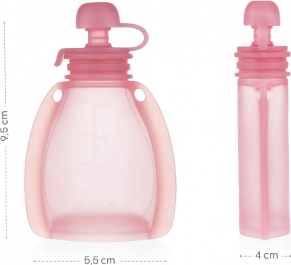 Asigurați copilului dumneavoastră o gustare proaspătă și sănătoasă cu punguța noastră de silicon reîncărcabilă ori de câte ori își dorește. Acest ajutor practic vă permite să pregătiți piureuri de fructe de casă sau alte bunătăți preferate, pe care le puteți lua cu voi în excursie, la plimbare sau la școală. Datorită capacului sigur, etanș, conținutul rămâne proaspăt și protejat împotriva vărsării.