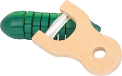 Părțile de castravete și roșie sunt unite prin scai, copiii le pot 'tăia' ușor cu cuțitul inclus.