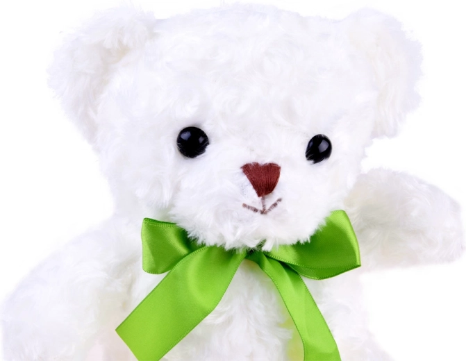 Ursulețul alb, elegant, cu fundiță verde îi va bucura pe copii și pe adulți și este potrivit pentru zile de naștere, sărbători sau ca o surpriză drăguță, pur și simplu.