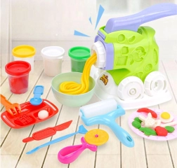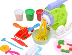 Acest set colorat susține imaginația copiilor și motricitatea fină. Cei mici pot presa, întinde și decupa diverse forme, pot amesteca culori și crea propriile „delicatese”. Presa stabilă și duzele ușor de schimbat transformă creația într-o activitate distractivă și sigură.