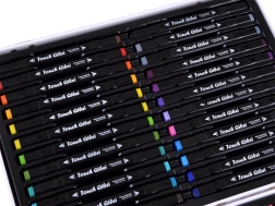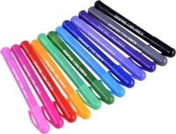 - 24 de markere groase, 12 carioci subțiri, 8 creioane colorate, 12 culori de acuarelă, 2 pensule, 1 carte de colorat