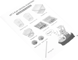 Ilustrații și instrucțiuni clare îi ghidează pe copii prin întregul experiment – de la amestecarea soluției până la plasarea seminței și creșterea cristalului.