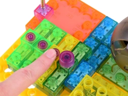 Acest set educațional îi învață pe copii să asambleze un radio FM cu adevărat funcțional din cuburi conductoare speciale. Sunt disponibile două modele – un radio simplu fără controlul volumului sau o versiune extinsă cu reglare lină a volumului și layout clar al circuitelor. Operarea este intuitivă: pornești/oprești radioul cu un buton, alegi postul FM cu al doilea buton, iar cu un element rotativ setezi volumul.