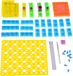 Setul susține gândirea logică, motricitatea fină și creativitatea. Datorită pieselor transparente și colorate, copiii înțeleg ușor cum funcționează împreună componentele într-un circuit electric. Sunt incluse difuzor, antenă telescopică metalică, bază din plastic și un ghid ilustrat. Alimentarea se face cu 3× baterii AA 1,5 V (nu sunt incluse).