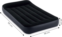 Salteaua gonflabilă practică INTEX pentru o singură persoană oferă dimensiuni de 191 × 99 × 25 cm, pompă electrică integrată pentru umflare și dezumflare rapidă, o suprafață catifelată (velur) plăcută la atingere și o construcție durabilă Fiber-Tech/Dura-Beam. Ideală acasă și în călătorii, cu capacitate maximă de 136 kg și pernă modelată pentru un confort sporit.