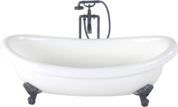 Cada albă cu aspect vintage susține jocul realist în baie și completează întregul set.
