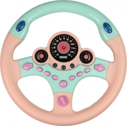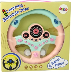 Volan interactiv pentru copii în culoare roz‑turaniz cu simulator de condus realist, cu sunete și lumini. Are 9 butoane funcționale, inclusiv semnalizări, claxon și sunete ale serviciilor de urgență. „Ceasurile” iluminate și pornirea cu cheie intensifică experiența la volan și îi ajută pe cei mici să învețe bazele regulilor de circulație.