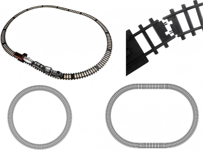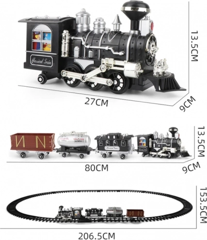 Lungimea totală a pistei depășește 206 cm, oferind o distracție grandioasă. Funcțiile interactive precum lumini și sunete adaugă un sentiment realist ca la un tren adevărat. Unitatea de control permite mers înainte și înapoi, accelerare și utilizarea semnalului sonor.