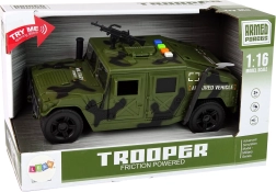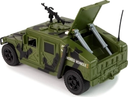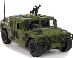 Dacă micuțul tău este pasionat de tematica militară și în special de vehicule, această mașină militară îi va trezi interesul și îi va permite să descopere tainele lumii militare. Vehiculul militar reprezintă un adaos perfect la colecția oricărui mic fan al armatei și motivelor militare. Este proiectat să atragă micii „soldați” care admiră această profesie eroică, dar periculoasă. Cu culori de camuflaj și caroserie lată, seamănă cu un vehicul militar real, inclusiv cu o mitralieră pe acoperiș.