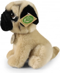 Mopsul de pluș arată ca un câine viu datorită detaliilor și prelucrării fine.