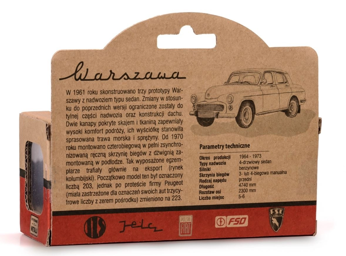 Warszawa 223 este modelul unei mașini poloneze cunoscute, care a fost proiectată în anul 1961 cu caroserie tip sedan. Designul elegant și detaliile atent lucrate îl fac un complement ideal pentru orice colecție de modele auto. Cele mai importante caracteristici ale acestui model includ: