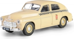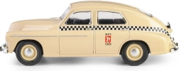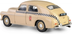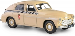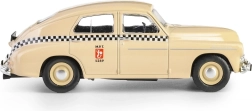 Model istoric mașină Warszawa M20 taxi în nuanță de nisip aduce nostalgie perioadei postbelice și este ideal pentru iubitorii de mașini din epoca PRL.