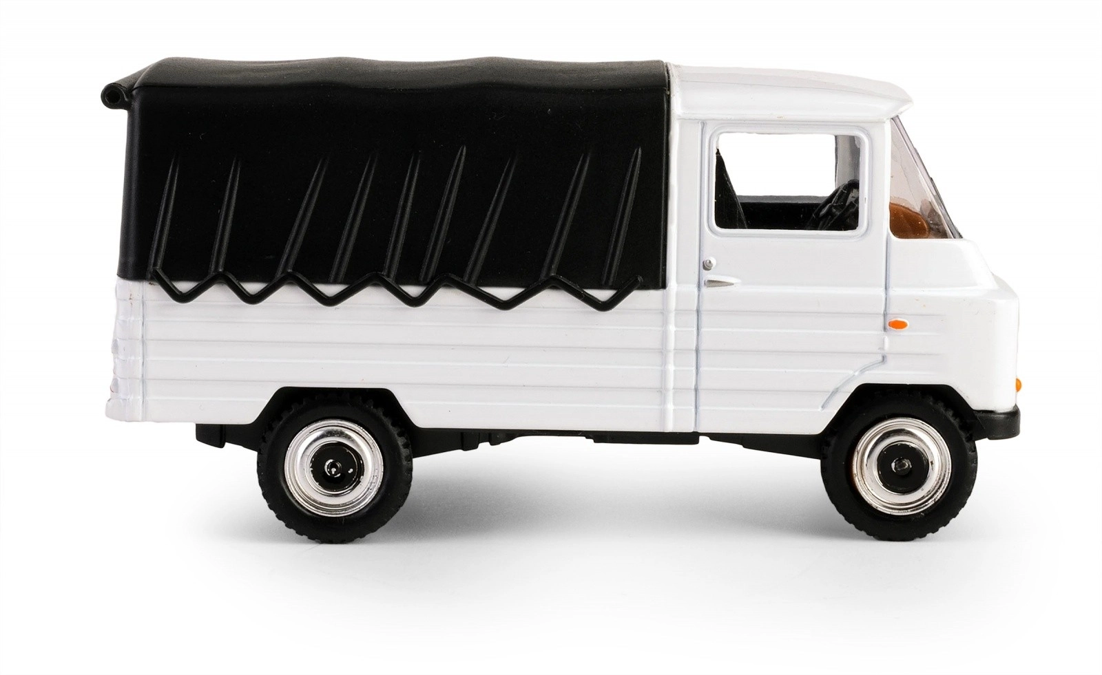 Acest model realizat cu grijă surprinde fidel silueta clasică a autoutilitarei ușoare PRL ŻUK: caroserie albă cu prelată neagră, mască proeminentă și detalii elaborate ale roților, geamurilor și farurilor. Datorită construcției din plastic de calitate și elementelor redate cu precizie, are un aspect foarte realist și completează perfect orice colecție.
