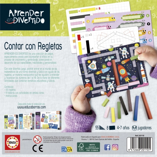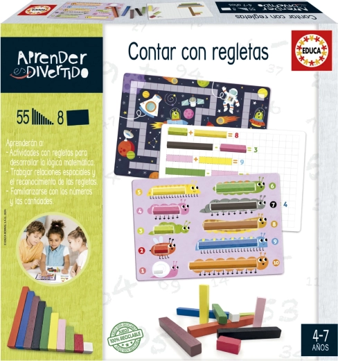 Jocul educativ distractiv EDUCA îi ajută pe copii, într-un mod jucăuș, să își dezvolte competențele matematice, înțelegerea numerelor și proporțiilor și le susține gândirea logică și încrederea în sine. Datorită activităților pe ambele fețe ale plăcilor și cuburilor colorate, învățarea se transformă în distracție.