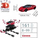 Cu 108 piese vei construi un model cu dimensiuni aprox. 25,1 × 6,8 × 12,8 cm. Sistemul Easyclick înseamnă fără adeziv, mai puțină mizerie și mai multă bucurie la asamblare. Ideal pentru fanii mașinilor sport, ai mărcii Ferrari și pentru colecționarii de puzzle-uri 3D.