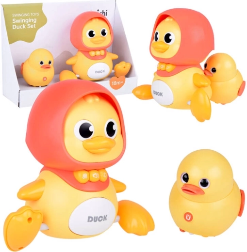 Sunt incluse două moduri de joc – melodii dinamice pentru joacă activă și cântec de leagăn discret (butonul „lună”) pentru liniștire înainte de somn. Datorită conectării magnetice, rățușa mare și cea mică pot fi prinse împreună pentru a forma un trenuleț adorabil, pe care copiii îl vor urmări cu bucurie târându-se sau mergând de-a bușilea.