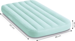 Salteaua gonflabilă INTEX cu dimensiunile 157x88x18 cm este concepută pentru un somn confortabil al unei persoane. Copiii o vor îndrăgi datorită designului său albastru plăcut și materialului din velur impermeabil, care este plăcut la atingere. Salteaua este echipată cu tehnologia Dura-Beam și Fiber-Tech, care asigură soliditatea și distribuția corectă a greutății pentru un somn sănătos.