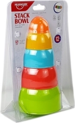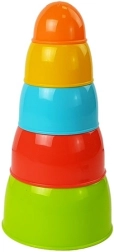 Această piramidă din boluri le permite copiilor să construiască un turn, să introducă bolurile unul în altul și să sorteze după mărime sau culoare. Jocul dezvoltă natural motricitatea degetelor, priza și coordonarea mână–ochi și, în același timp, învață înțelegerea relațiilor de mărime.