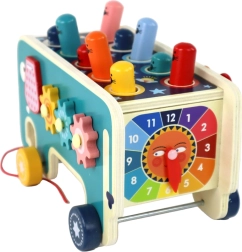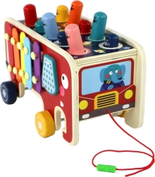 Setul este complet și conține mașinuța cu șnur de tras, 2 ciocănele pentru „Whac-a-Mole” și o baghetă pentru cinele. În plus, jucăria este realizată din lemn sigur pentru sănătate, care garantează durabilitate și siguranță pentru copii.