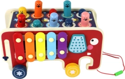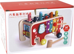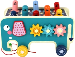 Setul este alcătuit dintr-o mașinuță din lemn cu motiv de elefant, care atrage atenția celor mai mici jucători. Pe acoperișul mașinii se află capete colorate de animale subterane, care devin țintele jocului „Whac-a-Mole”. Copiii încearcă să le lovească cu ciocănelele incluse, dezvoltându-și astfel îndemânarea și coordonarea motorie.