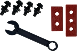 Toate uneltele sunt realizate și finisate exclusiv din plastic. Culoarea albastru-negru va fi vizibilă de la distanță, astfel încât uneltele nu se vor pierde. Întregul set poate fi ambalat în cutia inclusă, poate își va găsi locul în atelierul de acasă.