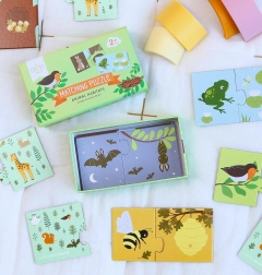 Puzzle de asociere distractiv pentru copii de la 2 ani, care dezvoltă logica, cunoașterea naturii și motricitatea fină. Conține 10 perechi separate, în care copiii caută unde locuiește fiecare animăluț. Piesele sunt din carton rezistent, au format mare pentru mâini mici și totul este păstrat într-o cutie practică pentru depozitare ușoară.