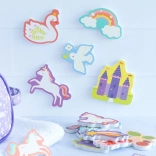 Acest set adorabil de unicorni din spumă transformă baia într-o aventură distractivă și creativă. Piesele se prind pe suprafețe netede după umezire, astfel încât copiii pot crea propriile povești direct pe faianță. Datorită plasei cu închidere și ventuze, păstrezi mereu ordinea, iar jucăriile se usucă rapid.