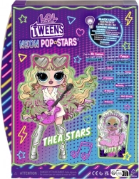 Pregătește-te să pășești în lumea vedetelor pop cu L.O.L. Surprise Tweens Neon Pop Stars - Thea Stars! Această păpușă unică este echipată cu costume la modă, pantofi eleganți, o geantă stylish, o chitară frumoasă, ochelari drăguți în formă de inimă și cercei decorativi. Fiecare detaliu este gândit pentru fanii modei și ai muzicii.