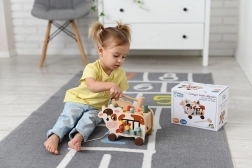 - Jucărie educațională din lemn de tras, cu elemente de bătut, angrenaje și activități numerice