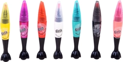 Șapte culori vii, cu combinația dintre vârful subțire și pensulă, permit desenarea detaliilor și umplerea suprafețelor. Ideal pentru linii, buline, ombré și motive proprii.