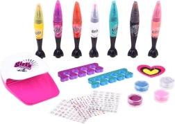 În pachet găsești totul pentru o manichiură și pedichiură jucăușă: 7 culori intense, 4 tipuri de sclipici, autocolante cu contururi și buline colorate, o pilă în formă de inimă și separatoare moi pentru o lăcuire confortabilă a degetelor de la picioare. Este nevoie doar de un strop de imaginație și unghiile vor fi de fiecare dată altfel.