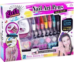 Acest set bogat echipat le va încânta pe toate micile stiliste de unghii. Datorită combinației de markere cu vârf subțire și pensulă, autocolante și sclipici, iau naștere modele ingenioase care dezvoltă atât motricitatea fină, cât și creativitatea. Uscătorul de unghii compact asigură o uscare mai rapidă și o creație mai confortabilă.