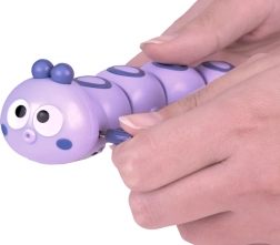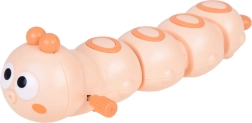 Este suficient să rotești de câteva ori cheița laterală, iar omiduța pornește singură. Copiii urmăresc mișcarea ondulatorie, învață principiul cauză–efect și se distrează alergând după ea pe podea.