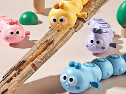 Această drăgălașă omiduță cu cheiță se deplasează singură înainte și se unduiește ritmic după o simplă armare, atrăgându-i în mod natural pe copii să se târască, să pășească și să se joace împreună. Datorită culorilor vii și ochilor mari, este vizual atrăgătoare pentru copii și susține concentrarea atenției.