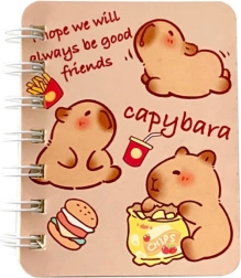 Setul de caiete drăguțe Kapibara este un set unic de 4 caiete care va încânta orice iubitor al acestor animale adorabile. Caietele în format compact A7 (105 x 82 mm) sunt nu doar practice, ci și ideale pentru planificarea zilnică, luarea de notițe sau schițare. Fiecare are 80 de pagini liniate, iar coperțile lor moi, colorate, cu motiv capibara atrag atenția. Datorită dimensiunilor reduse, caietele încap cu ușurință în poșetă, rucsac sau chiar în buzunar, fiind ideale pentru călătorii, școală, serviciu sau întâlniri.