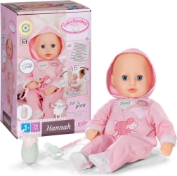Hannah este potrivită pentru copii începând de la 1 an. Are un corp textil moale și 5 funcții interactive realiste. Când îi ții biberonul la gură, vei auzi sunete drăgălașe de băut. Apasă-i ușor burtica și va spune „aga“. Când o înclini spre stânga sau spre dreapta, începe să sughițe sau să râdă.