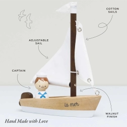 Vaporul din lemn de la Le Toy Van este accesoriul perfect pentru orice iubitor al jocurilor de fantezie. Cu eleganță și un aer autentic, pânzele de bumbac și steagul se unduiesc ușor în vânt. Marinarul în miniatură din lemn, cu haine pictate manual, sporește valoarea de joc a acestei jucării.