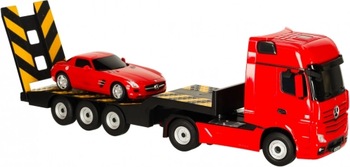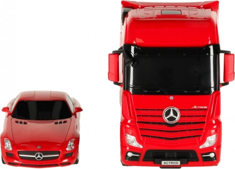 Bucurați-vă de distracție nelimitată cu mașina controlată de la distanță Mercedes-Benz Actros! Această mașină, în culoare roșie atrăgătoare și la scara 1:26, este cadoul perfect pentru orice pasionat de automobile.