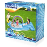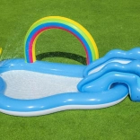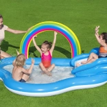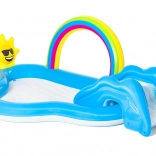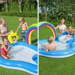 Acest teren de joacă acvatic este alegerea perfectă pentru copiii pe timpul verii. Datorită combinației prietenoase cu poarta curcubeului și soarele, copiii dvs. se vor bucura de ore de distracție în apa răcoritoare. Multifuncționalitatea piscinei nu doar că oferă un adăpost răcoritor împotriva căldurii de vară, dar aduce și râsete și bucurie datorită multitudinii de funcții.
