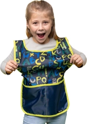 Șorțul Poncho este conceput pentru toți creativii mici și mari. Este fabricat din 100% poliester, asigurându-i durabilitatea și întreținerea ușoară. Îmbrăcarea simplă peste cap și închiderea laterală cu capse facilitează îmbrăcarea și dezbrăcarea rapidă. Designul practic include două buzunare frontale spațioase pentru depozitarea ușoară a ustensilelor și materialelor de artă.