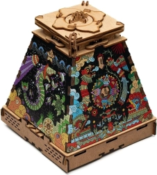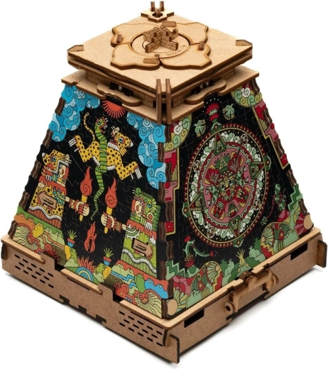 Transformă piramida din lemn într-un element de design captivant. Acest al doilea strat, cu tema Imperiul Aztec, acoperă elegant motivele originale și oferă modelului tău un aspect pronunțat, colorat, inspirat de Mesoamerica antică. Extensia este destinată exclusiv modelului PYRAMIDA SLUNCE și are doar rol decorativ – nu influențează mecanismul și nici soluția puzzle-ului.