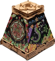 Instalarea este intuitivă: acoperiți imaginea originală cu un strat negru, atașați ramele și asamblați pe rând cele 4 seturi de piese – câte unul pentru fiecare latură a piramidei. Activitatea îi va captiva atât pe solitari, cât și pe grupuri de 1–4 jucători, timp de 90–120 de minute, iar rezultatul este o decorațiune durabilă din lemn.