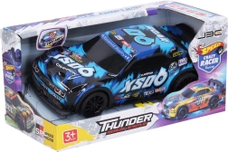 Mașina de curse compactă cu mecanism pe inerție oferă efecte luminoase și sonore la apăsarea capotei din față. Datorită efectului luminos albastru și dimensiunilor practice de 19,5 × 8,5 × 5,5 cm, este ideală pentru joacă dinamică acasă și în călătorii. Bateriile sunt incluse, astfel că distracția poate începe imediat.