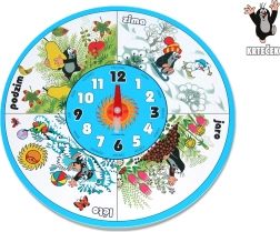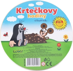 Ceasul stilat din lemn cu motivul KRTEK atrage atenția în orice cameră de copii. Are un diametru de 20 cm, este ușor, se instalează simplu și, datorită cadranului clar, îi ajută pe copii la învățarea orei.